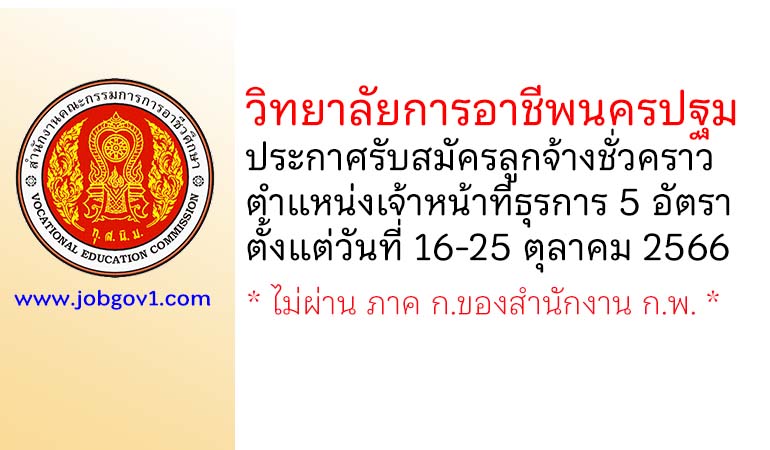 วิทยาลัยการอาชีพนครปฐม รับสมัครลูกจ้างชั่วคราว ตำแหน่งเจ้าหน้าที่ธุรการ 5 อัตรา ตั้งแต่วันที่ 16-25 ตุลาคม 2566