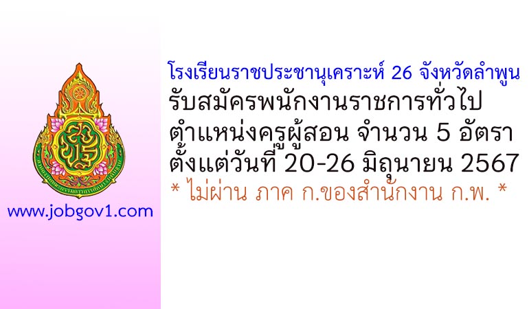 โรงเรียนราชประชานุเคราะห์ 26 จังหวัดลำพูน รับสมัครพนักงานราชการทั่วไป ตำแหน่งครูผู้สอน 5 อัตรา ตั้งแต่วันที่ 20-26 มิถุนายน 2567