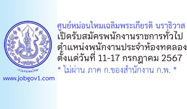 ศูนย์หม่อนไหมเฉลิมพระเกียรติ นราธิวาส รับสมัครพนักงานราชการทั่วไป ตำแหน่งพนักงานประจำห้องทดลอง ตั้งแต่วันที่ 11-17 กรกฎาคม 2567