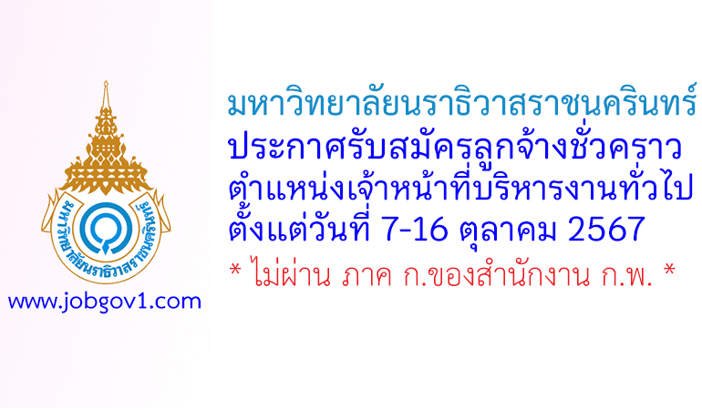 มหาวิทยาลัยนราธิวาสราชนครินทร์ รับสมัครลูกจ้างชั่วคราว ตำแหน่งเจ้าหน้าที่บริหารงานทั่วไป ตั้งแต่วันที่ 7-16 ตุลาคม 2567