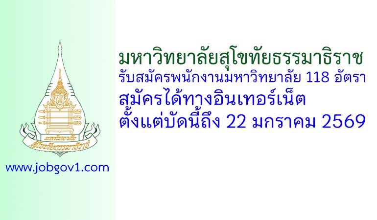 มหาวิทยาลัยสุโขทัยธรรมาธิราช รับสมัครพนักงานมหาวิทยาลัย 118 อัตรา ตั้งแต่บัดนี้ถึง 22 มกราคม 2569
