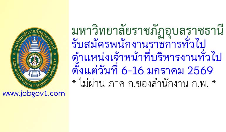 มหาวิทยาลัยราชภัฏอุบลราชธานี รับสมัครพนักงานราชการทั่วไป ตำแหน่งเจ้าหน้าที่บริหารงานทั่วไป ตั้งแต่วันที่ 6-16 มกราคม 2569