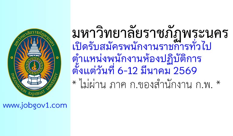 มหาวิทยาลัยราชภัฏพระนคร รับสมัครพนักงานราชการทั่วไป ตำแหน่งพนักงานห้องปฏิบัติการ ตั้งแต่วันที่ 6-12 มีนาคม 2569