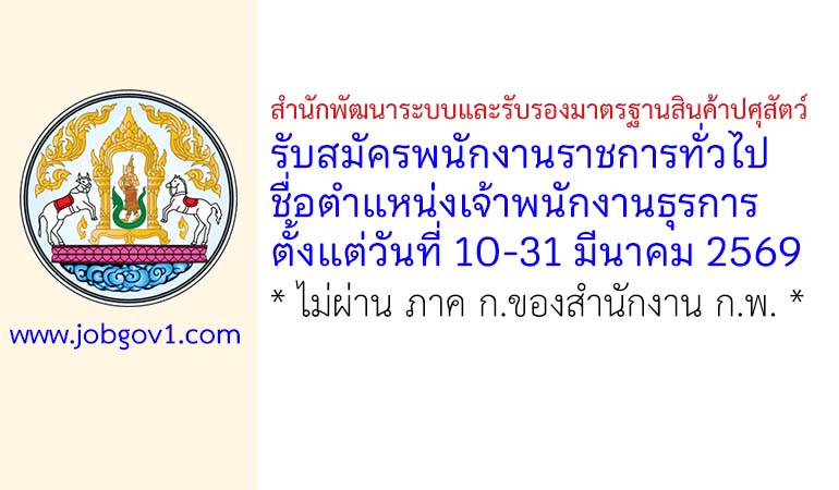 สำนักพัฒนาระบบและรับรองมาตรฐานสินค้าปศุสัตว์ รับสมัครพนักงานราชการทั่วไป ตำแหน่งเจ้าพนักงานธุรการ ตั้งแต่วันที่ 10-31 มีนาคม 2569
