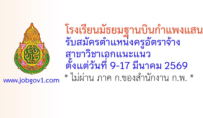 โรงเรียนมัธยมฐานบินกำแพงแสน รับสมัครครูอัตราจ้าง สาขาวิชาเอกแนะแนว ตั้งแต่วันที่ 9-17 มีนาคม 2569
