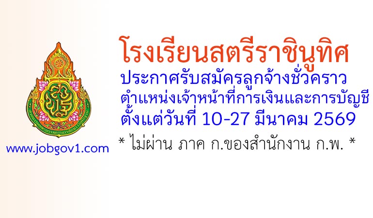 โรงเรียนสตรีราชินูทิศ รับสมัครลูกจ้างชั่วคราว ตำแหน่งเจ้าหน้าที่การเงินและการบัญชี ตั้งแต่วันที่ 10-27 มีนาคม 2569