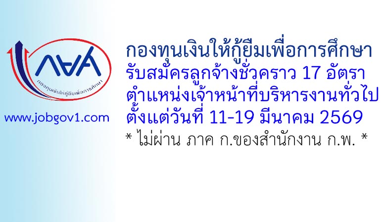 กองทุนเงินให้กู้ยืมเพื่อการศึกษา รับสมัครลูกจ้างชั่วคราว ตำแหน่งเจ้าหน้าที่บริหารงานทั่วไป 17 อัตรา ตั้งแต่วันที่ 11-19 มีนาคม 2569
