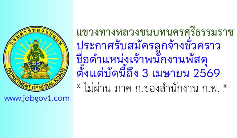 แขวงทางหลวงชนบทนครศรีธรรมราช รับสมัครลูกจ้างชั่วคราว ตำแหน่งเจ้าพนักงานพัสดุ ตั้งแต่บัดนี้ถึง 3 เมษายน 2569