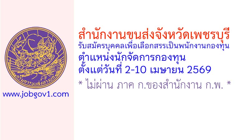สำนักงานขนส่งจังหวัดเพชรบุรี รับสมัครบุคคลเพื่อเลือกสรรเป็นพนักงานกองทุน ตำแหน่งนักจัดการกองทุน ตั้งแต่วันที่ 2-10 เมษายน 2569