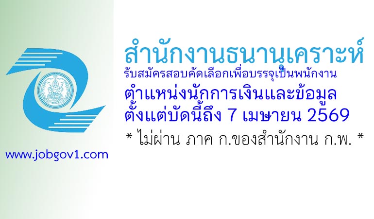 สำนักงานธนานุเคราะห์ รับสมัครสอบคัดเลือกเพื่อบรรจุเป็นพนักงาน ตำแหน่งนักการเงินและข้อมูล ตั้งแต่บัดนี้ถึง 7 เมษายน 2569