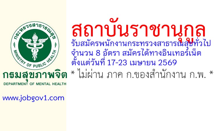 สถาบันราชานุกูล รับสมัครพนักงานกระทรวงสาธารณสุขทั่วไป 8 อัตรา ตั้งแต่วันที่ 17-23 เมษายน 2569