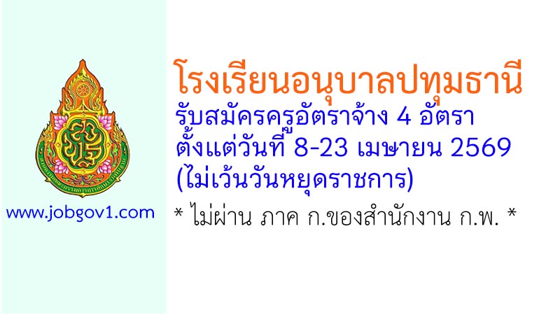 โรงเรียนอนุบาลปทุมธานี รับสมัครตำแหน่งครูอัตราจ้าง 4 อัตรา ตั้งแต่วันที่ 8-23 เมษายน 2569