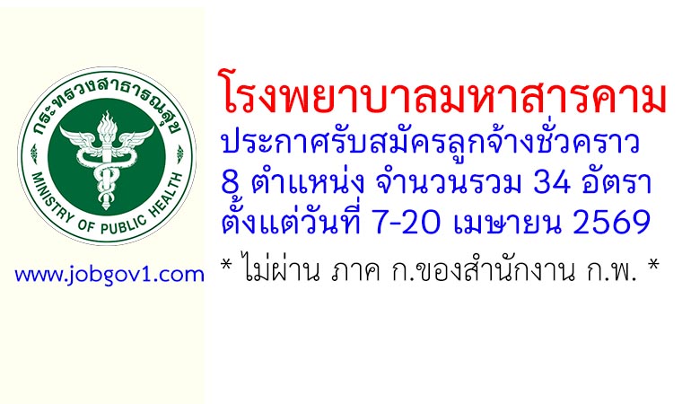 โรงพยาบาลมหาสารคาม รับสมัครลูกจ้างชั่วคราว 34 อัตรา ตั้งแต่วันที่ 7-20 เมษายน 2569