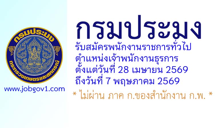 กรมประมง รับสมัครพนักงานราชการทั่วไป ตำแหน่งเจ้าพนักงานธุรการ ตั้งแต่วันที่ 28 เมษายน 2569 ถึงวันที่ 7 พฤษภาคม 2569