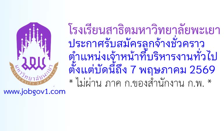 โรงเรียนสาธิตมหาวิทยาลัยพะเยา รับสมัครลูกจ้างชั่วคราว ตำแหน่งเจ้าหน้าที่บริหารงานทั่วไป ตั้งแต่บัดนี้ถึง 7 พฤษภาคม 2569