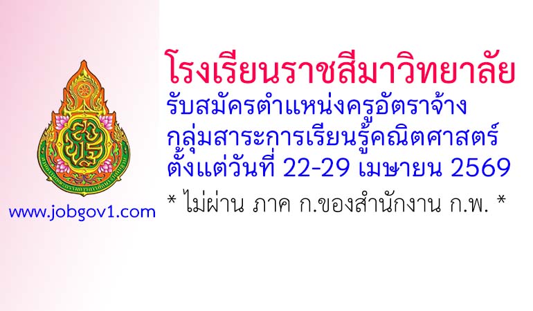 โรงเรียนราชสีมาวิทยาลัย รับสมัครครูอัตราจ้าง กลุ่มสาระการเรียนรู้คณิตศาสตร์ ตั้งแต่วันที่ 22-29 เมษายน 2569