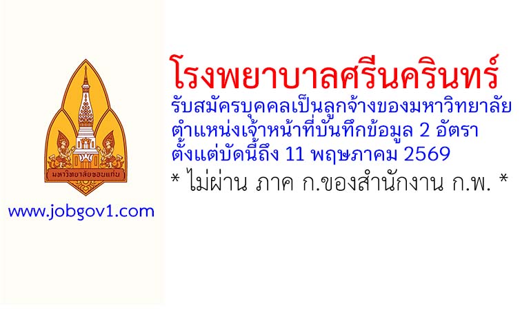 โรงพยาบาลศรีนครินทร์ รับสมัครบุคคลเป็นลูกจ้างของมหาวิทยาลัย ตำแหน่งเจ้าหน้าที่บันทึกข้อมูล 2 อัตรา ตั้งแต่บัดนี้ถึง 11 พฤษภาคม 2569