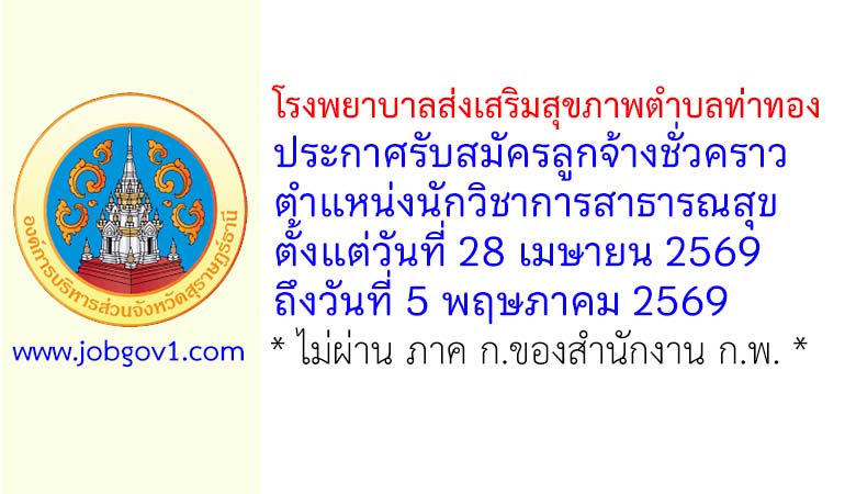 โรงพยาบาลส่งเสริมสุขภาพตำบลท่าทอง รับสมัครลูกจ้างชั่วคราว ตำแหน่งนักวิชาการสาธารณสุข ตั้งแต่วันที่ 28 เมษายน 2569 ถึงวันที่ 5 พฤษภาคม 2569