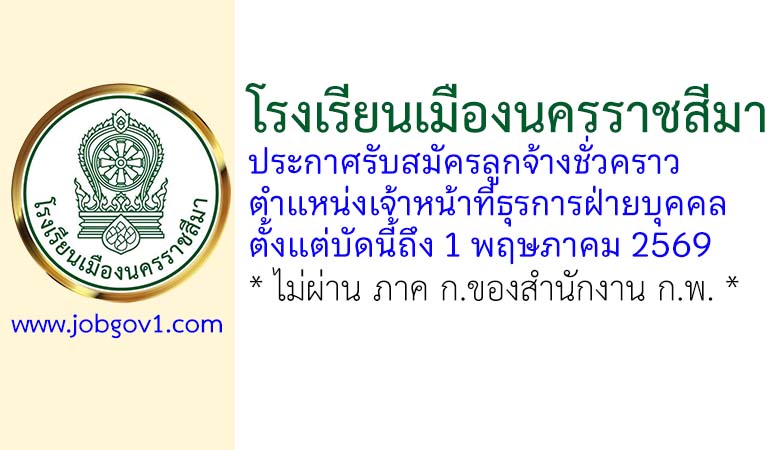 โรงเรียนเมืองนครราชสีมา รับสมัครลูกจ้างชั่วคราว ตำแหน่งเจ้าหน้าที่ธุรการฝ่ายบุคคล ตั้งแต่บัดนี้ถึง 1 พฤษภาคม 2569