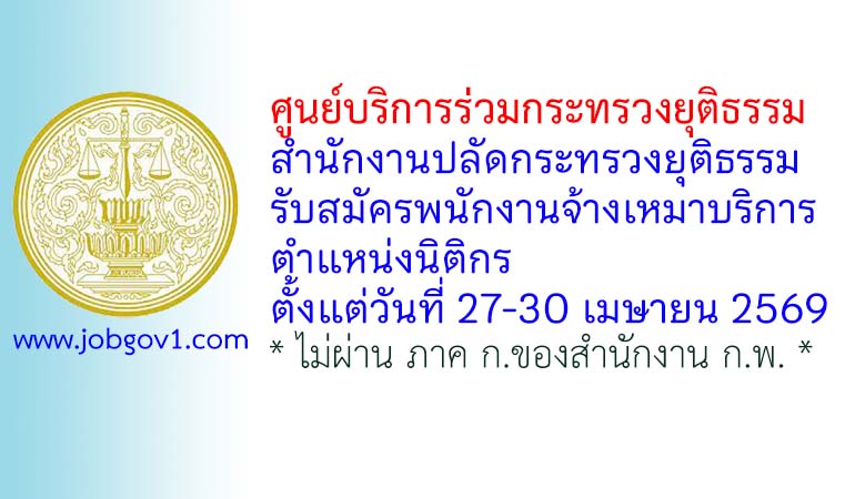 ศูนย์บริการร่วมกระทรวงยุติธรรม สำนักงานปลัดกระทรวงยุติธรรม รับสมัครพนักงานจ้างเหมาบริการ ตำแหน่งนิติกร ตั้งแต่วันที่ 27-30 เมษายน 2569
