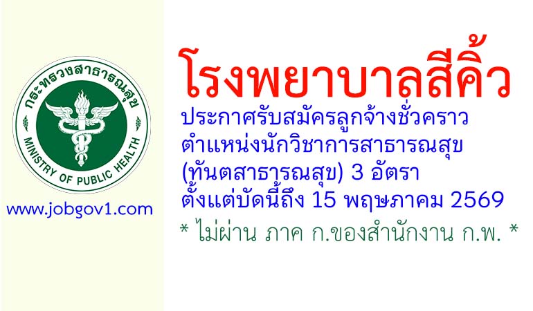 โรงพยาบาลสีคิ้ว รับสมัครลูกจ้างชั่วคราว ตำแหน่งนักวิชาการสาธารณสุข (ทันตสาธารณสุข) 3 อัตรา ตั้งแต่บัดนี้ถึง 15 พฤษภาคม 2569