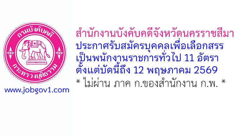 กรมบังคับคดี รับสมัครบุคคลเพื่อเลือกสรรเป็นพนักงานราชการทั่วไป 11 อัตรา ตั้งแต่บัดนี้ถึง 12 พฤษภาคม 2569