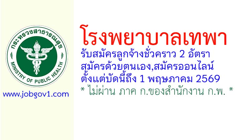 โรงพยาบาลเทพา รับสมัครลูกจ้างชั่วคราว 2 อัตรา ตั้งแต่บัดนี้ถึง 1 พฤษภาคม 2569