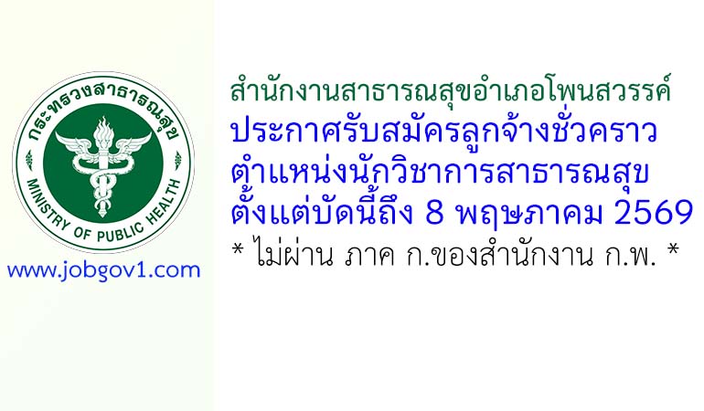 สำนักงานสาธารณสุขอำเภอโพนสวรรค์ รับสมัครลูกจ้างชั่วคราว ตำแหน่งนักวิชาการสาธารณสุข ตั้งแต่บัดนี้ถึง 8 พฤษภาคม 2569
