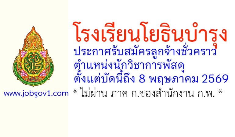 โรงเรียนโยธินบำรุง รับสมัครลูกจ้างชั่วคราว ตำแหน่งนักวิชาการพัสดุ ตั้งแต่บัดนี้ถึง 8 พฤษภาคม 2569