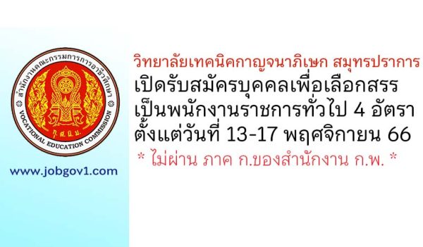 วิทยาลัยเทคนิคสมุทรปราการ รับสมัครลูกจ้างชั่วคราว ตำแหน่งเจ้าหน้าที่ธุรการ (งานการเงิน)