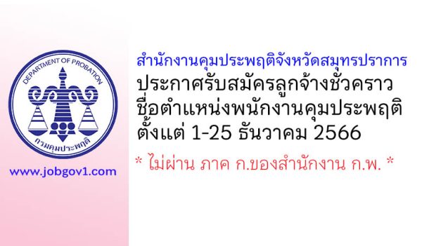สำนักงานคุมประพฤติจังหวัดสมุทรปราการ รับสมัครลูกจ้างชั่วคราว ตำแหน่งพนักงานคุมประพฤติ