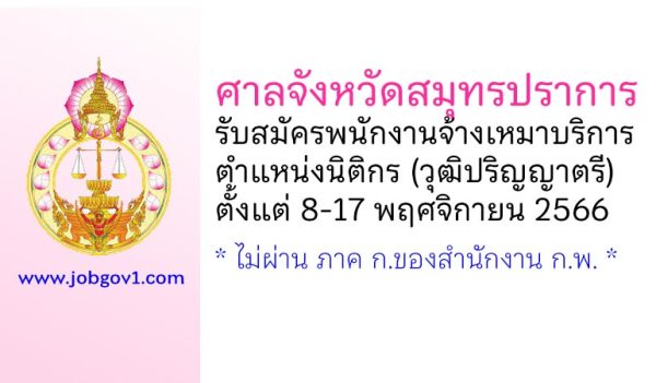 ศาลจังหวัดสมุทรปราการ รับสมัครจ้างเหมาบริการรายบุคคล ตำแหน่งเจ้าหน้าที่ศาลยุติธรรม ตั้งแต่วันที่ 1-12 ธันวาคม 2568