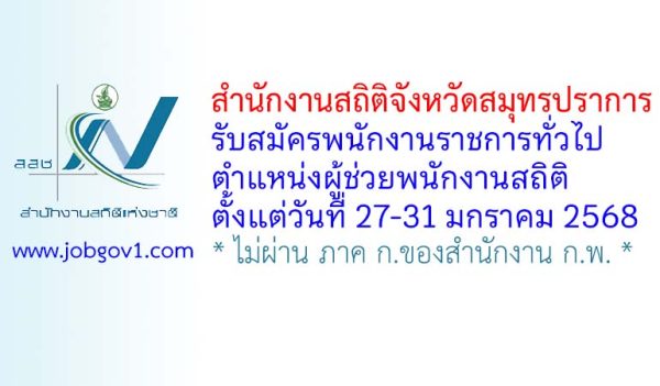 สำนักงานสกร.จังหวัดสมุทรปราการ รับสมัครบุคคลเพื่อเลือกสรรเป็นพนักงานจ้างเหมาบริการ 3 อัตรา ตั้งแต่วันที่ 11-17 พฤศจิกายน 2568