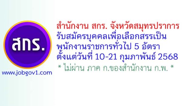 สำนักงานสกร.จังหวัดสมุทรปราการ รับสมัครบุคคลเพื่อเลือกสรรเป็นพนักงานจ้างเหมาบริการ 3 อัตรา