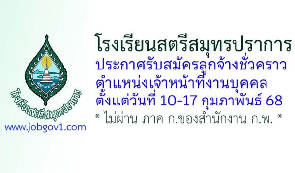 โรงเรียนสตรีสมุทรปราการ รับสมัครลูกจ้างชั่วคราว ตำแหน่งเจ้าหน้าที่งานบุคคล ตั้งแต่วันที่ 2-24 ตุลาคม 2568