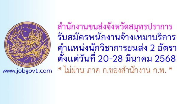 สำนักงานขนส่งจังหวัดสมุทรปราการ รับสมัครบุคคลเพื่อเลือกสรรเป็นพนักงานกองทุน ตำแหน่งเจ้าพนักงานการเงินและบัญชี ตั้งแต่ 27 ตุลาคม – 4 พฤศจิกายน 2568