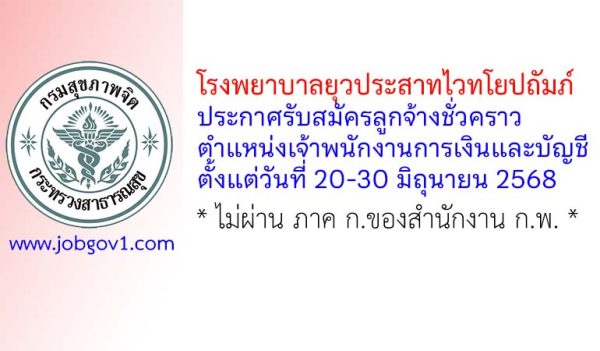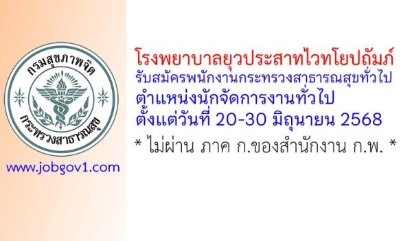 โรงพยาบาลยุวประสาทไวทโยปถัมภ์ รับสมัครพนักงานกระทรวงสาธารณสุขทั่วไป 3 อัตรา ตั้งแต่บัดนี้ถึง 27 พฤศจิกายน 2568