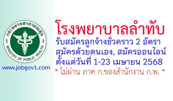 โรงพยาบาลลำทับ รับสมัครลูกจ้างชั่วคราว 2 อัตรา ตั้งแต่วันที่ 1-23 เมษายน 2568