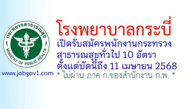 โรงพยาบาลกระบี่ รับสมัครพนักงานกระทรวงสาธารณสุขทั่วไป 10 อัตรา ตั้งแต่บัดนี้ถึง 11 เมษายน 2568