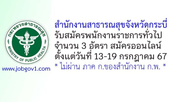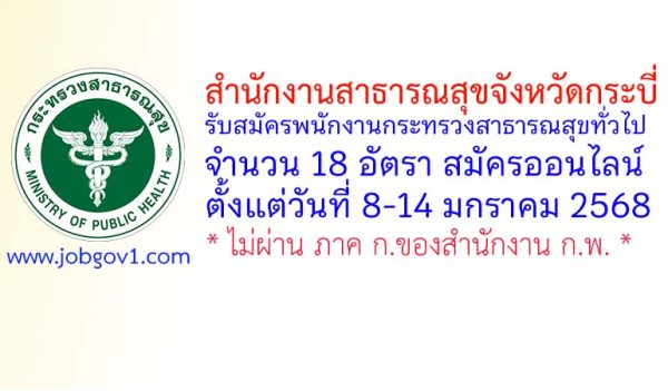 สำนักงานสาธารณสุขจังหวัดกระบี่ รับสมัครพนักงานกระทรวงสาธารณสุขทั่วไป 18 อัตรา ตั้งแต่วันที่ 8-14 มกราคม 2568