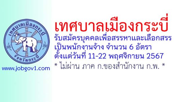 เทศบาลเมืองกระบี่ รับสมัครบุคคลเพื่อสรรหาและเลือกสรรเป็นพนักงานจ้าง 6 อัตรา ตั้งแต่วันที่ 11-22 พฤศจิกายน 2567