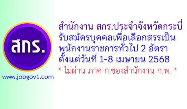 สำนักงาน สกร.ประจำจังหวัดกระบี่ รับสมัครบุคคลเพื่อเลือกสรรเป็นพนักงานราชการทั่วไป 2 อัตรา ตั้งแต่วันที่ 1-8 เมษายน 2568