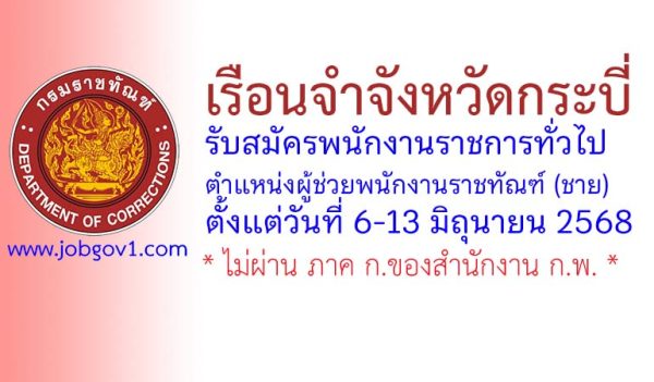 เรือนจำจังหวัดกระบี่ รับสมัครพนักงานราชการทั่วไป ตำแหน่งผู้ช่วยพนักงานราชทัณฑ์ (ชาย) ตั้งแต่วันที่ 6-13 มิถุนายน 2568