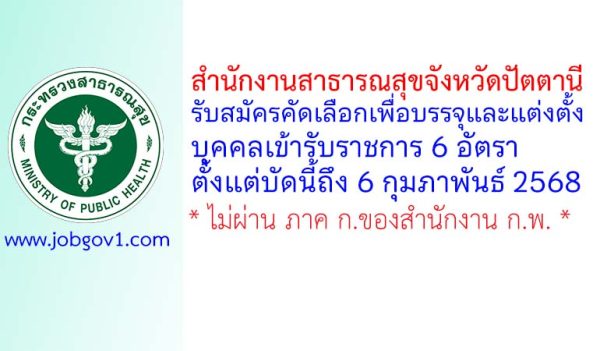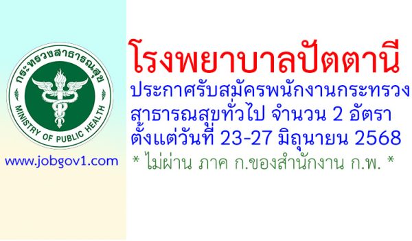 โรงพยาบาลปัตตานี รับสมัครพนักงานกระทรวงสาธารณสุขทั่วไป 2 อัตรา ตั้งแต่วันที่ 23-27 มิถุนายน 2568