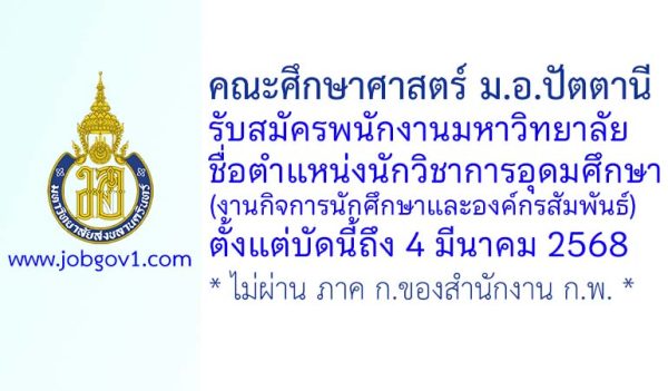 มหาวิทยาลัยสงขลานครินทร์ วิทยาเขตปัตตานี รับสมัครพนักงานมหาวิทยาลัย ตำแหน่งนักวิชาการอุดมศึกษา