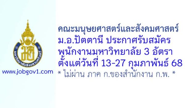คณะมนุษยศาสตร์และสังคมศาสตร์ ม.อ.ปัตตานี รับสมัครพนักงานมหาวิทยาลัย ตำแหน่งนักวิชาการอุดมศึกษา (ปฏิบัติงานด้านวิชาการ)