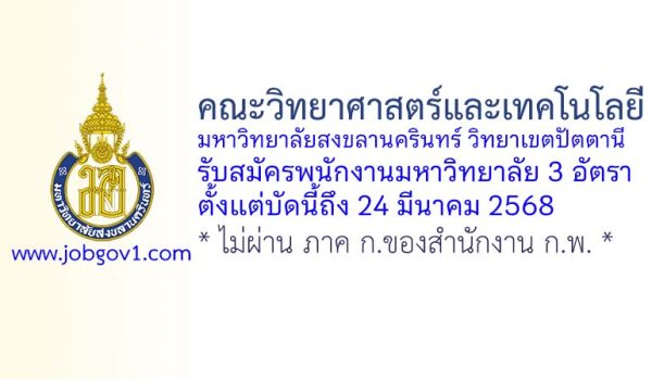 มหาวิทยาลัยสงขลานครินทร์ วิทยาเขตปัตตานี รับสมัครพนักงานมหาวิทยาลัย ตำแหน่งนักวิชาการอุดมศึกษา ตั้งแต่บัดนี้ถึง 14 พฤษภาคม 2568