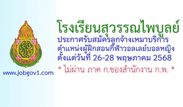 โรงเรียนสุวรรณไพบูลย์ รับสมัครลูกจ้างเหมาบริการ ตำแหน่งผู้ฝึกสอนกีฬาวอลเลย์บอลหญิง ตั้งแต่วันที่ 26-28 พฤษภาคม 2568