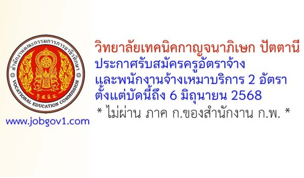 วิทยาลัยเทคนิคกาญจนาภิเษก ปัตตานี รับสมัครครูอัตราจ้าง และพนักงานจ้างเหมาบริการ 2 อัตรา ตั้งแต่บัดนี้ถึง 6 มิถุนายน 2568