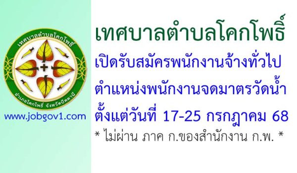 เทศบาลตำบลโคกโพธิ์ รับสมัครพนักงานจ้างทั่วไป ตำแหน่งพนักงานจดมาตรวัดน้ำ ตั้งแต่วันที่ 17-25 กรกฎาคม 2568